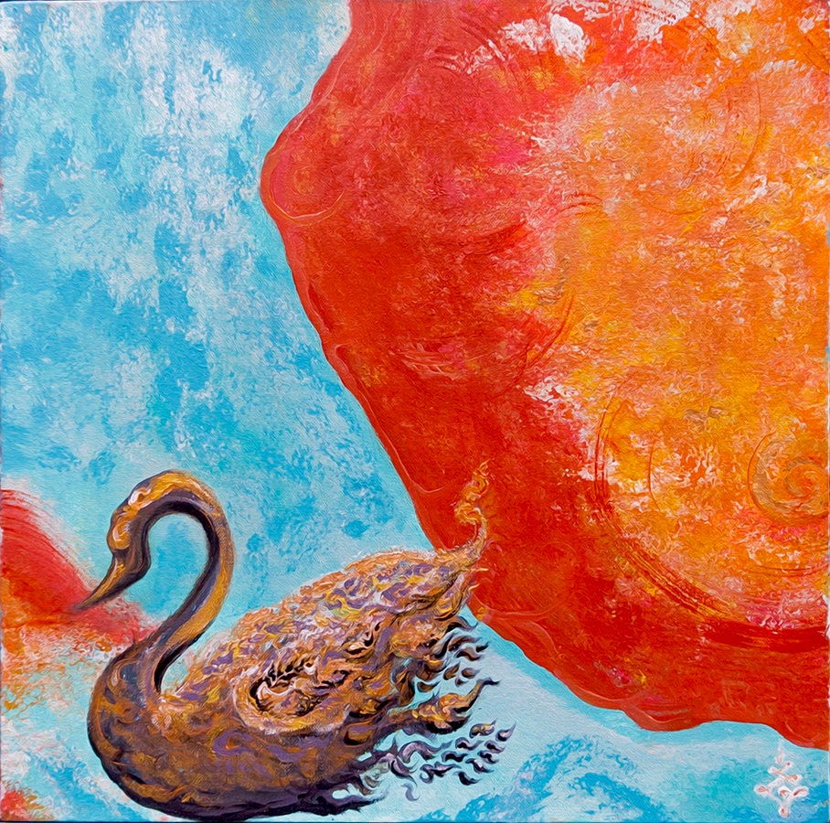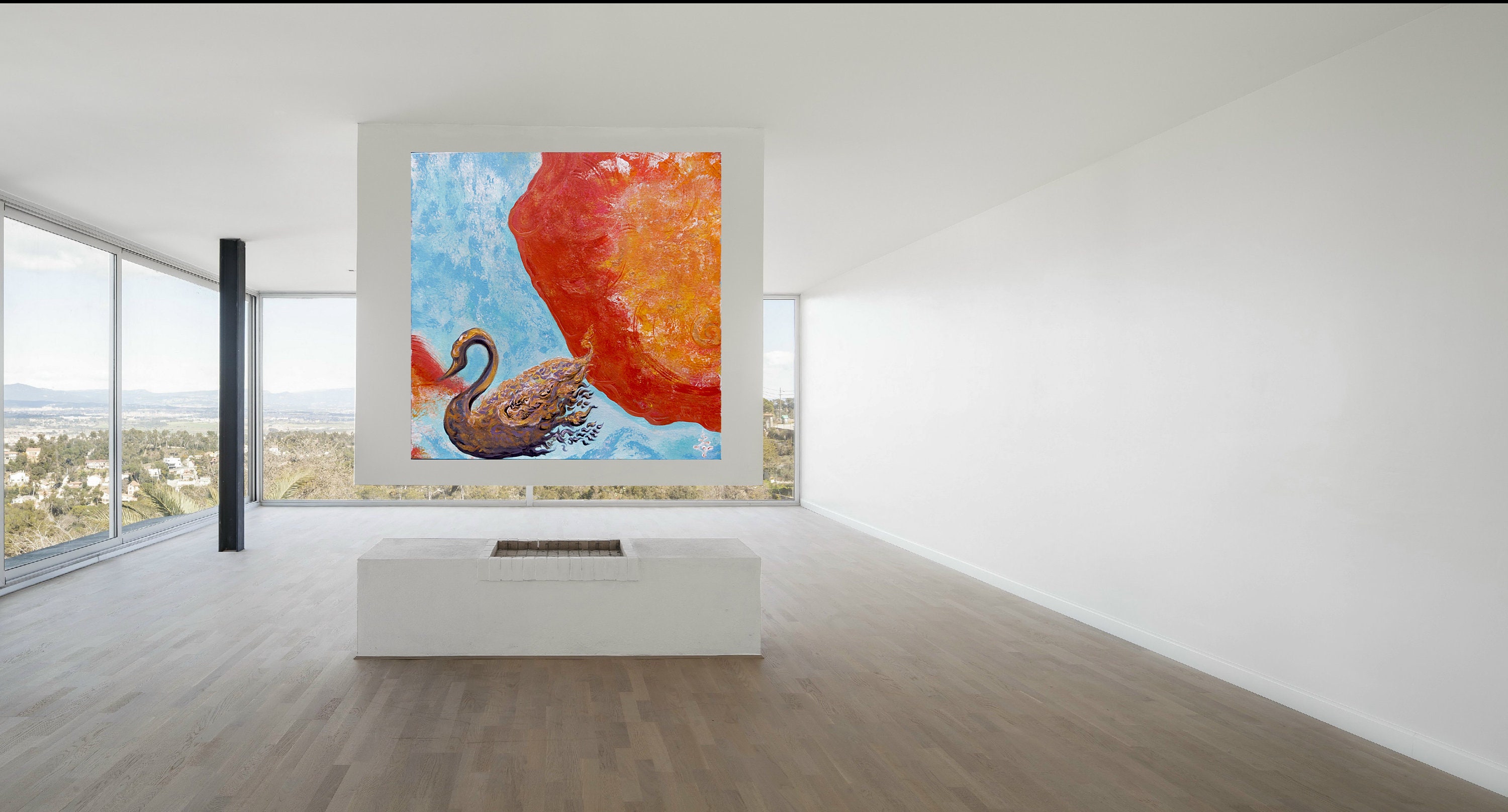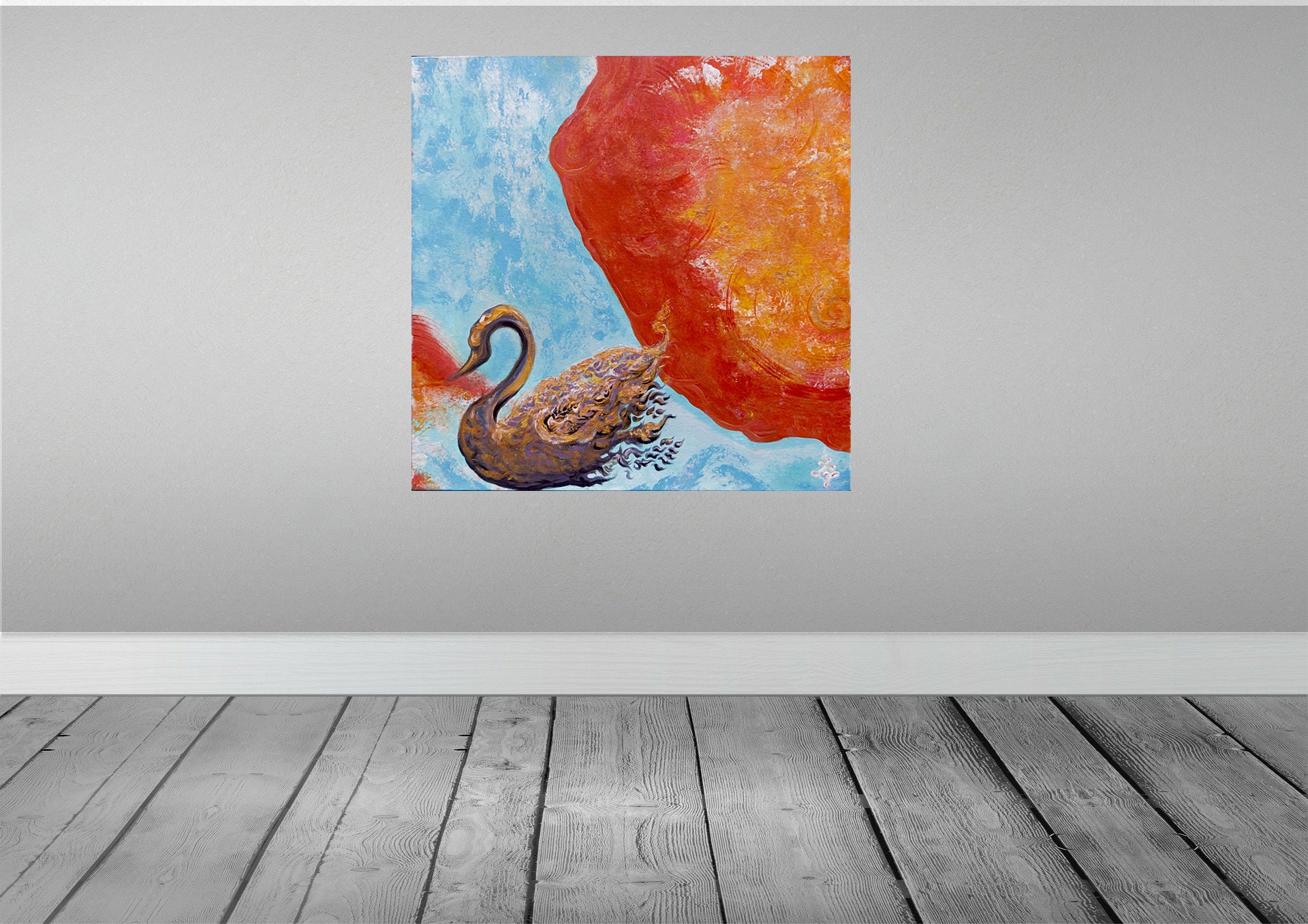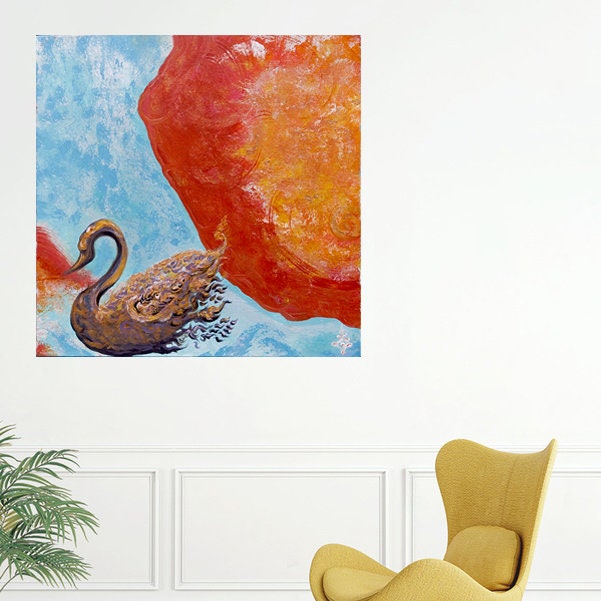 Swan on Mars - Journey around the Sun - Original Painting - Artprint on Canvas - Customisable Art