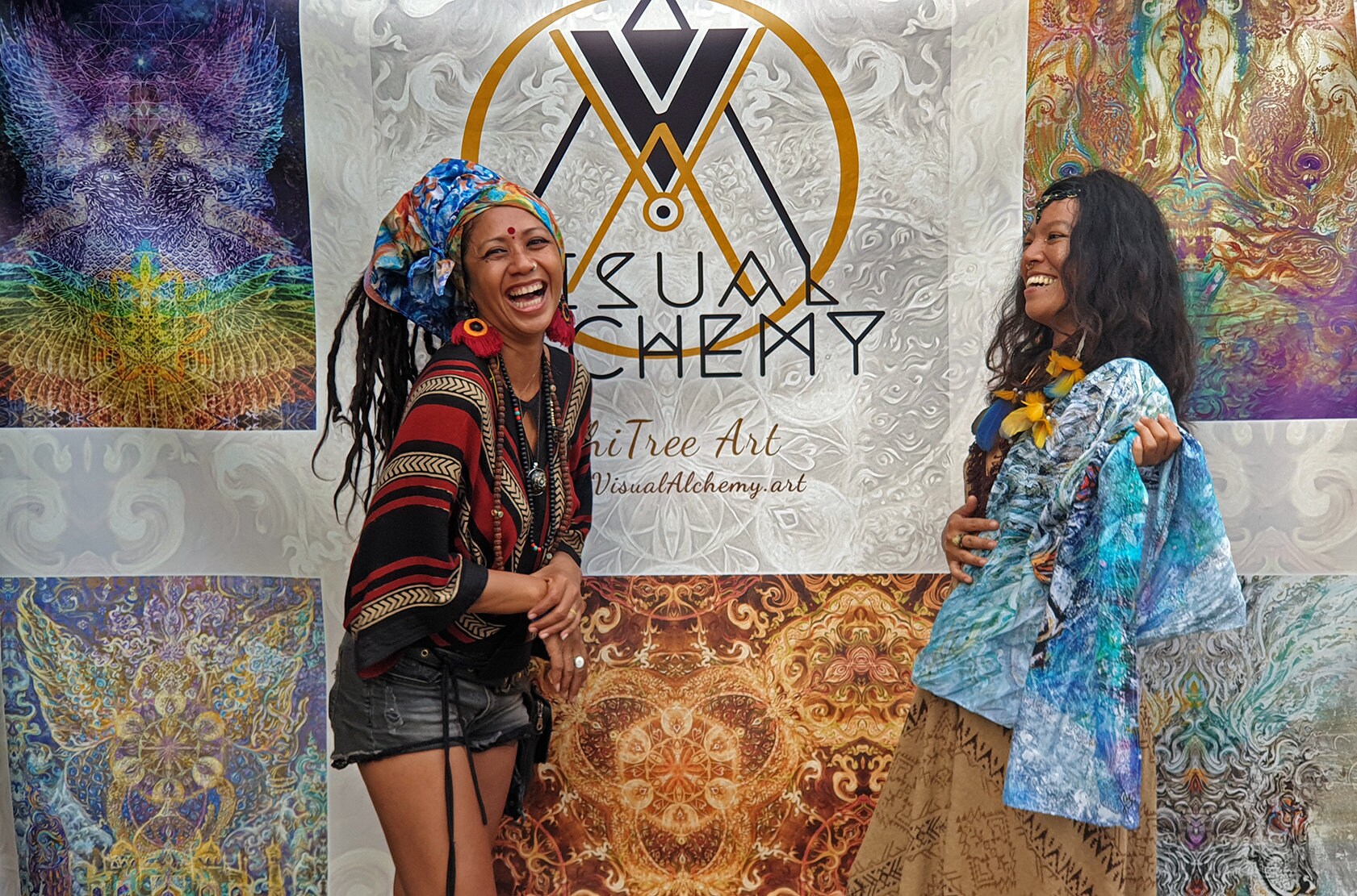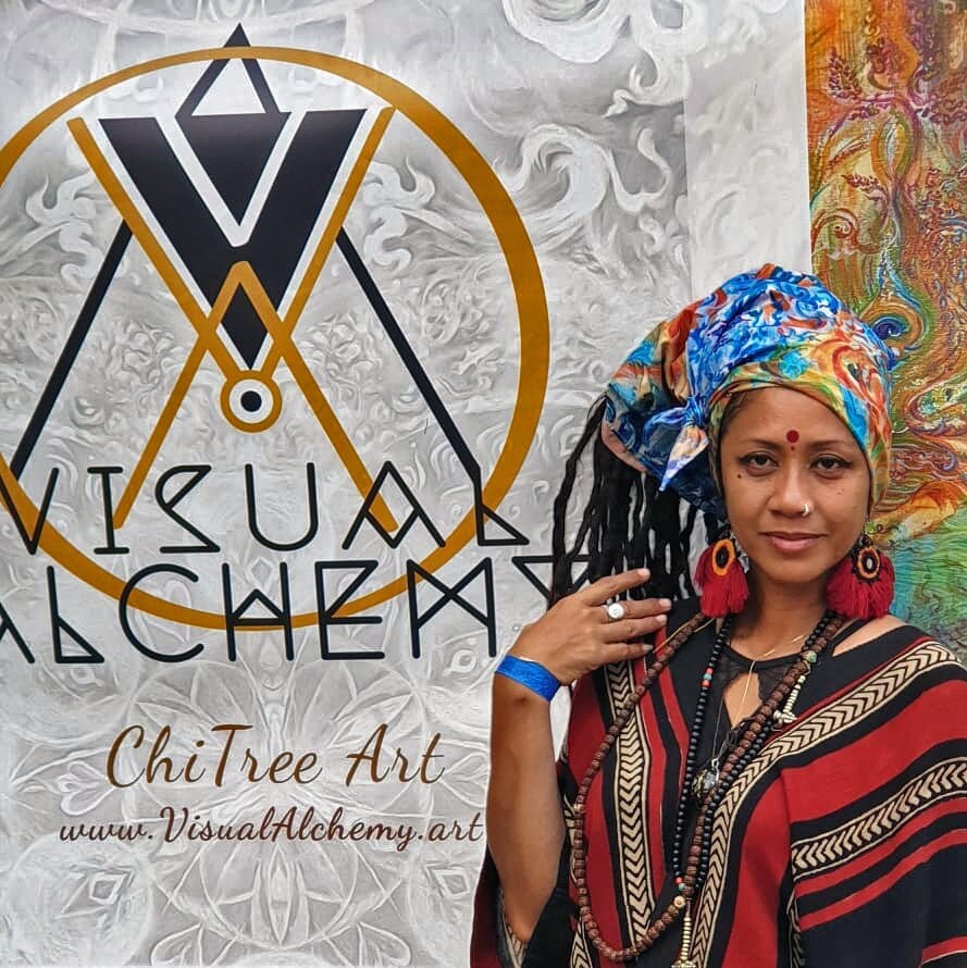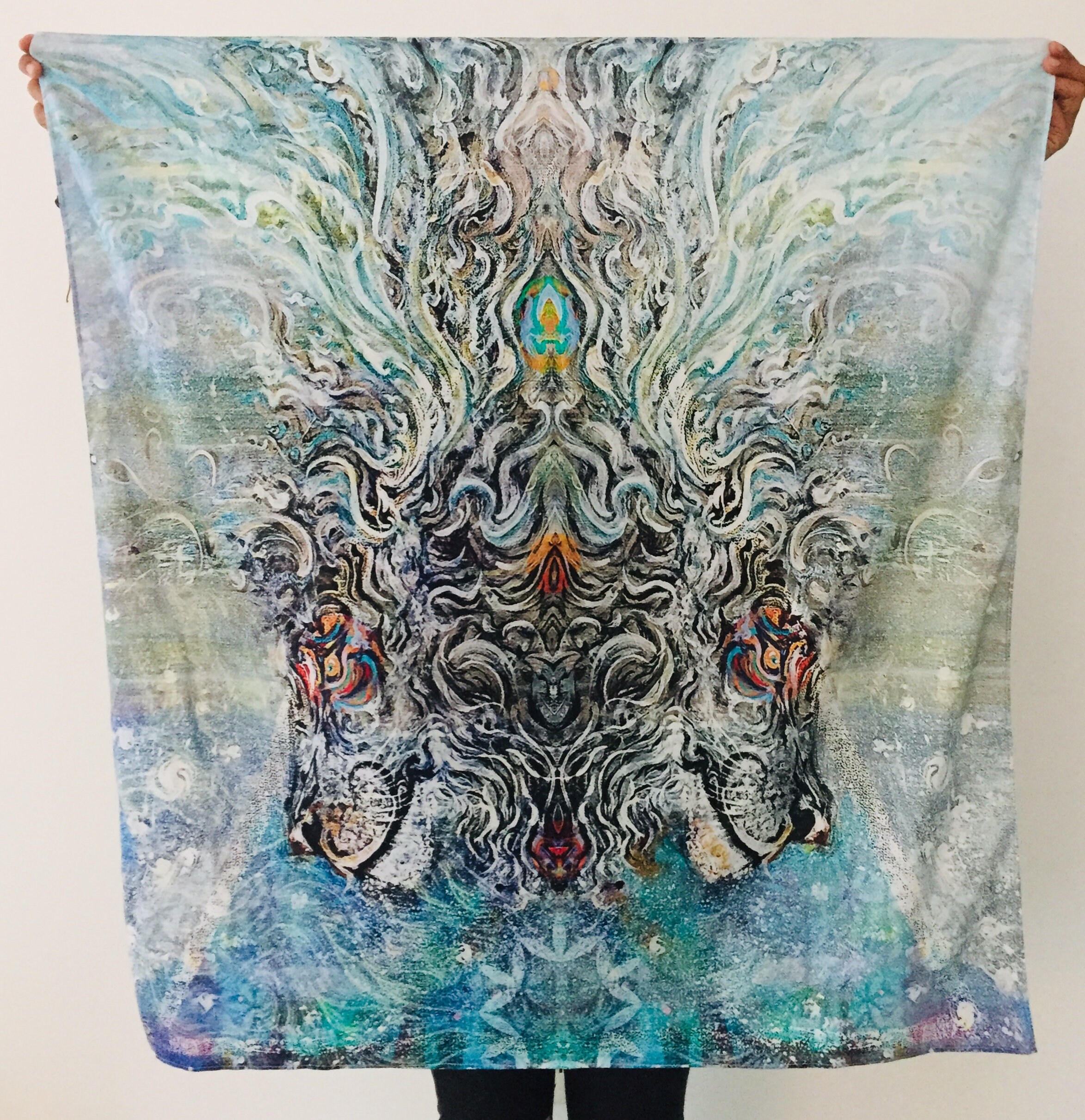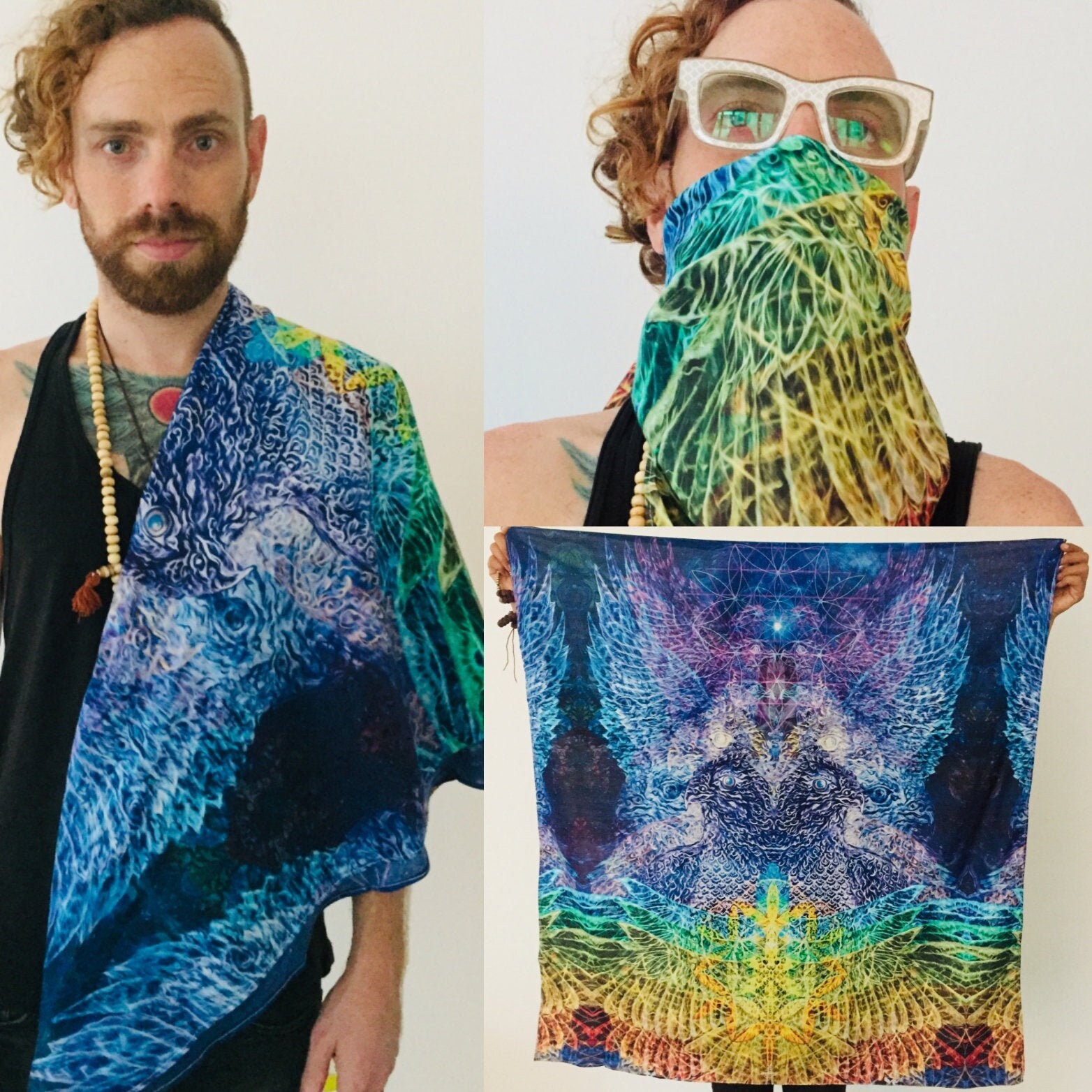 Visual Alchemy - Fine Cotton Bandhana-Scarf - Wall Décor - Versatile Visionary Art on Cotton - 1 of 5 Designs in 100x100cm