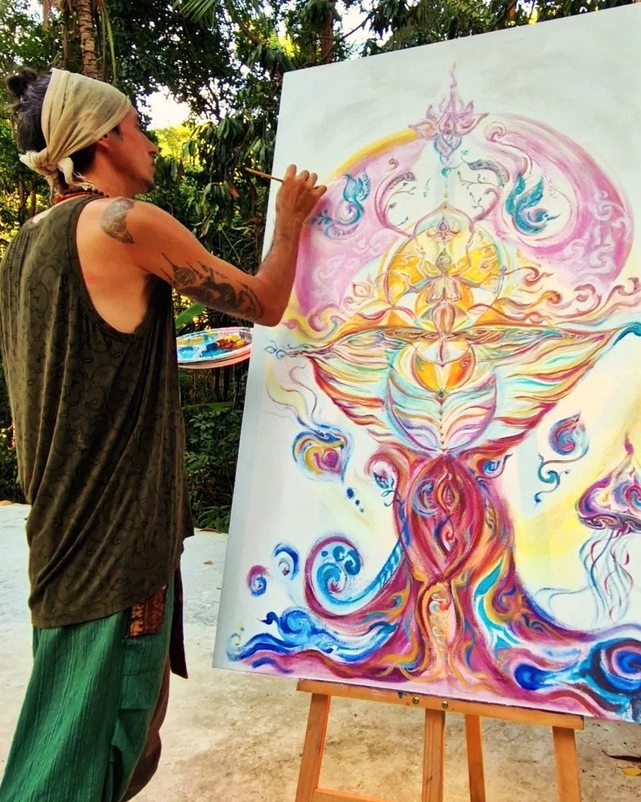 A Golden Portal, a recognition of her/himself in Awareness of One Self in each other a cosmic shakti island bubble or yoniversing bubbletree an exhausted and joyfully grateful me, in the perception and reflection on being an artist sharing an unspoken spiraling language in color on canvas while actually being asked to say something about the process and be-coming.. refelcting on a journey, unfolding as it IS